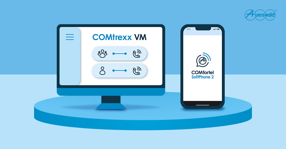 Die neueste Generation des COMfortel SoftPhones von Auerswald ist eine leistungsstarke und günstige Einstiegslösung für alle, die mobile Arbeitsplatzkonzepte mit COMtrexx und COMpact Systemen umsetzen möchten. PC, Mac und mobile Endgeräte werden mit dem SoftPhone 2 zu vollwertigen Auerswald Telefonen. Profitiert jetzt von der unternehmensinternen Chat-Möglichkeit und vielen bewährten Telefonie-Features der COMfortel Serie. Mit der zweiten Generation des COMfortel SoftPhones lässt sich die Integration jedes Mitarbeiters realisieren und die Erreichbarkeit wird über alle Standorte gewährleistet – egal ob am Unternehmensstandort, im Homeoffice, im Coworking Space oder beim Kunden. Dabei profitiert Ihr von allen Vorteilen einer On-Prem-Lösung mit sicherer, stets verfügbarer Cloud-Technologie mit jahrelangem Auerswald Knowhow.